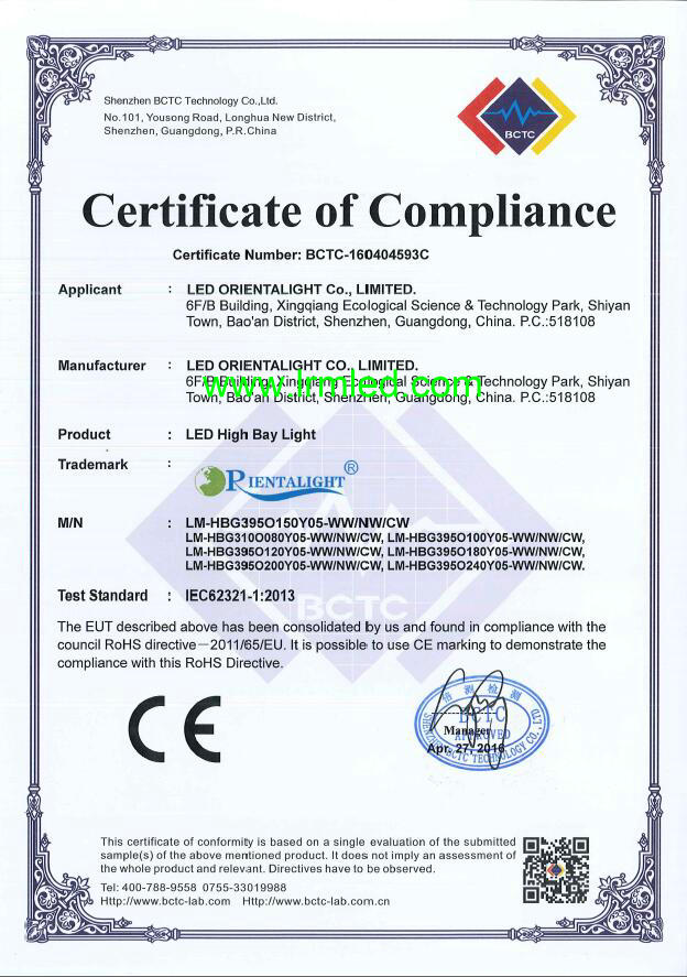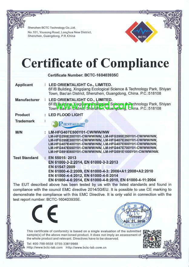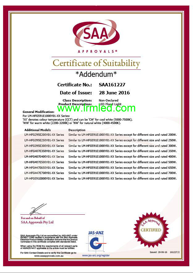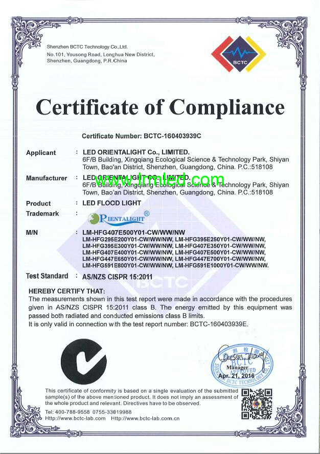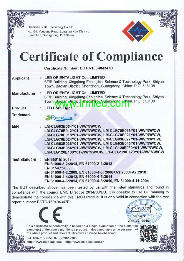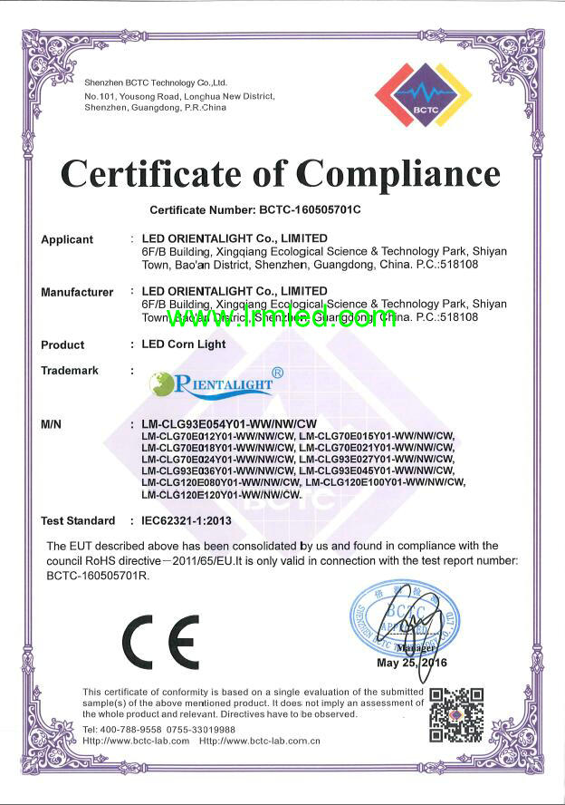 Our led Corn light, led high bay, led flood light and led fish gathering light got CE, RoHS, SAA, C-Tick certificate etc.