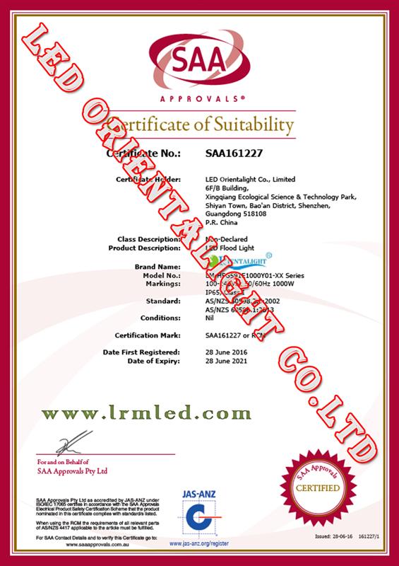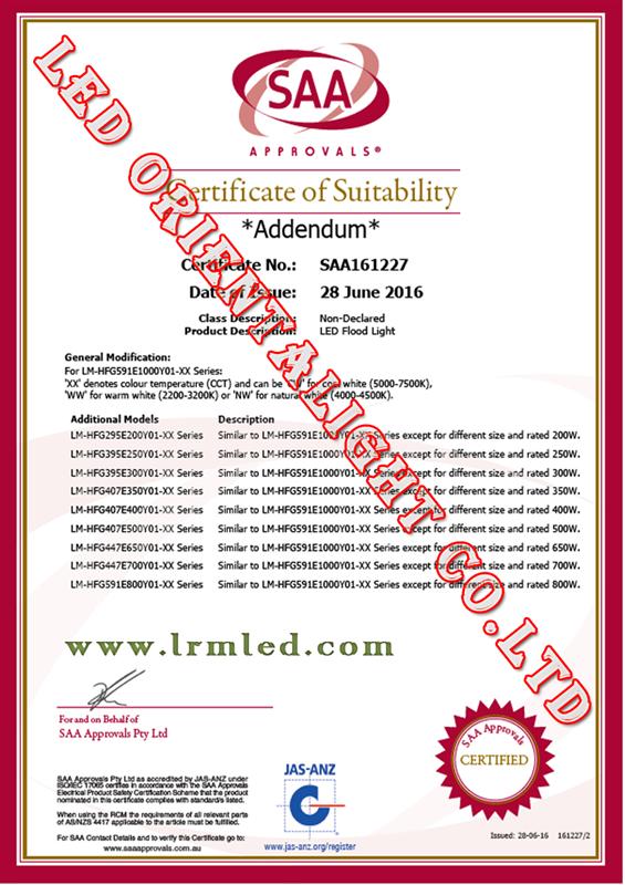 Good news!Our High Power LED Flood Light 200w/250w/300w/350w/400w/500w/650w/700w/800w/1000w just got SAA Certificate!