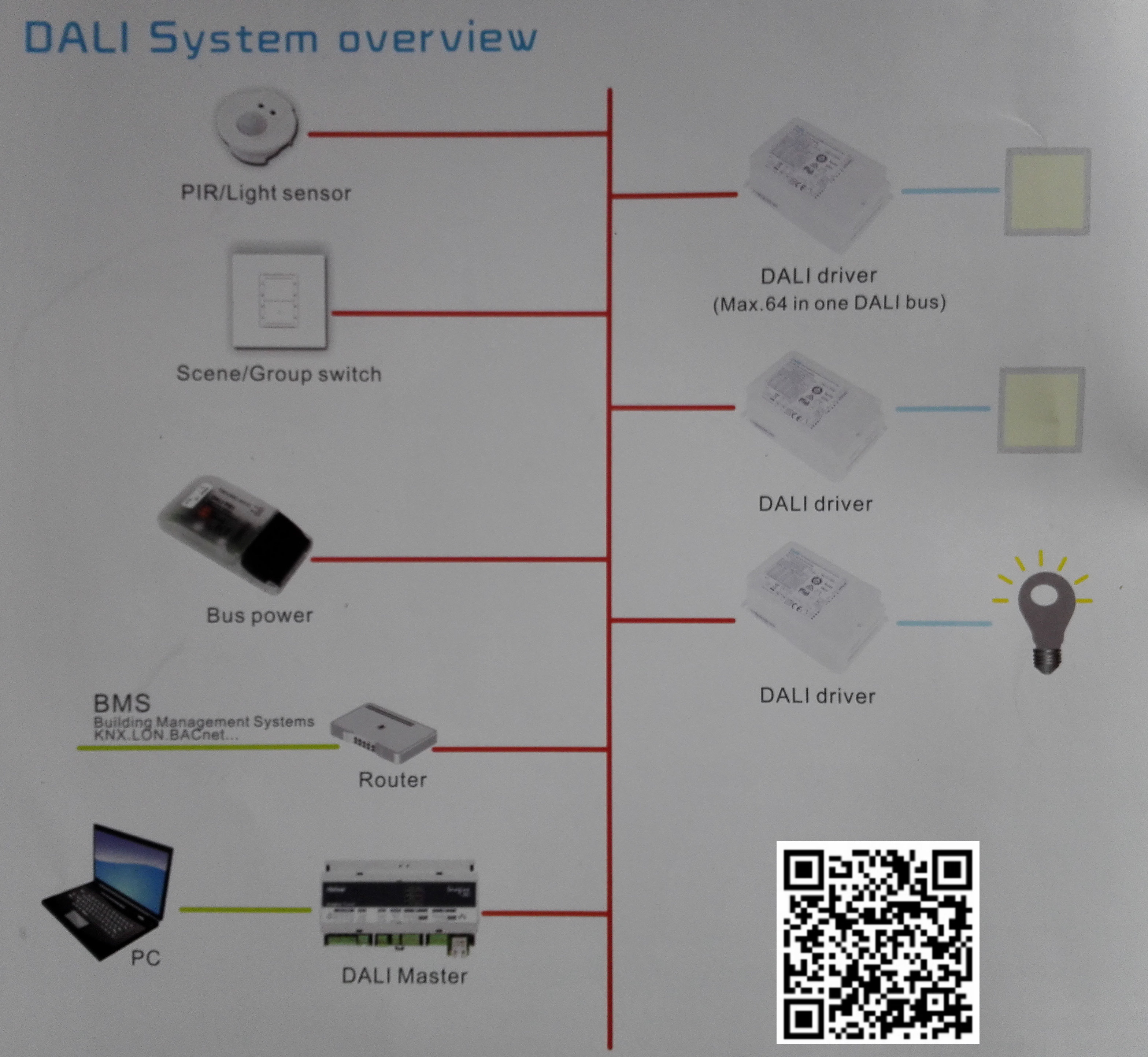 DALI creates potential for connectivity-e.g. TCP/IP, BAC net and KNX.