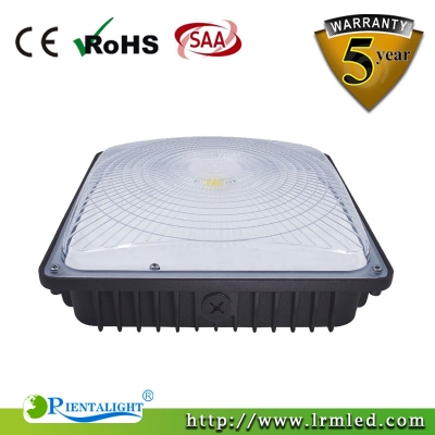 The 45w led canopy light can be an ideal replacement for 150w high pressure sodium and 150w metal halide lamp and 150w HID fixtures, which can save much energy and electric cost. It‘s more suitable to use storage area, small garage, outdoor walkways, warehouse, entry ways, security lighting etc. We suggest installing it on ceiling up to 12 feet high and about 10*10 feet area. For larger areas, you need order more fixtures accordingly.
