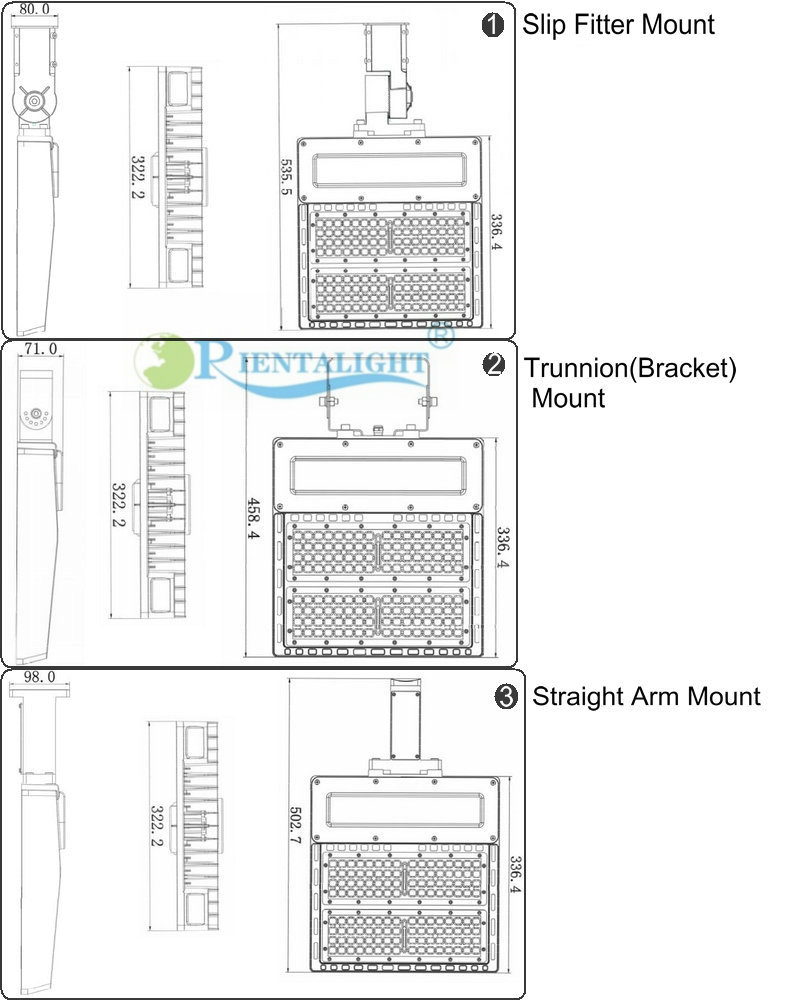 150w led shoebox light is ETL and DLC4.0 listed, long lifespan above 50,000hours and 5 years warranty and low maintainance cost for this 150w led shoebox light.This 150w led shoebox light can be replacement for 400w High pressure sodium, HID and MH light. One fixture light with four installation options, and you are easy to cover full range of lighting solutions for any outdoor area lighting applications.
