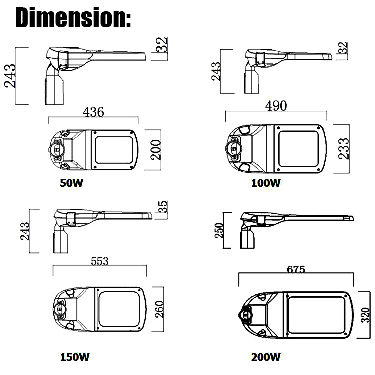 This new design led street light take high efficiency Osram or Philips led chip to make sure high light efficiency, Meanwell or other brand good quality led driver to make sure stability and durability. It‘s a perferct choice for your project. Please consider about it.