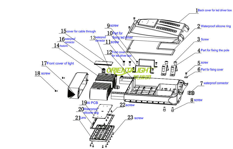 The 120w LED street light from Orientalight provide a top quality and maintenance free lighting solution that has been designed this year.Orientalight provide 5-7 years warranty of superior illumination with a minimum total cost of ownership.The modular shape LED street light enable the design flexibility that easily accommodates a wide range of street lighting applications such as municipal road, residential streets, walkways, bicycle ways, parking lot, bridges etc.