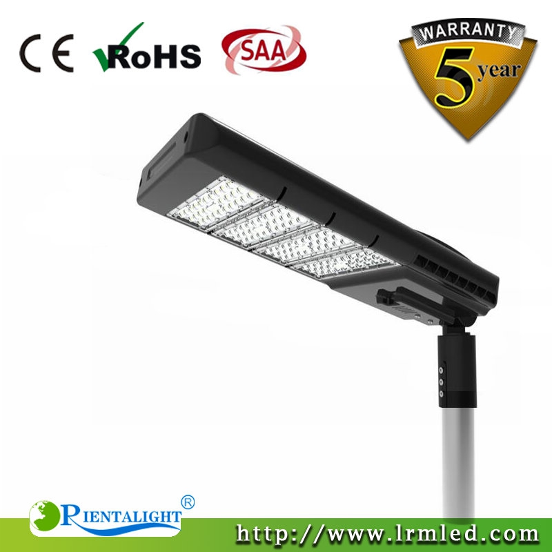 The 250w LED street light from Orientalight provide a top quality and maintenance free lighting solution that has been designed this year.Orientalight provide 5-7 years warranty of superior illumination with a minimum total cost of ownership.The 250w LED Street Lights are designed to address the multiple outdoor lighting challenges in municipal lighting, from pubulic roadways, walk ways, parking lot to residential streets.