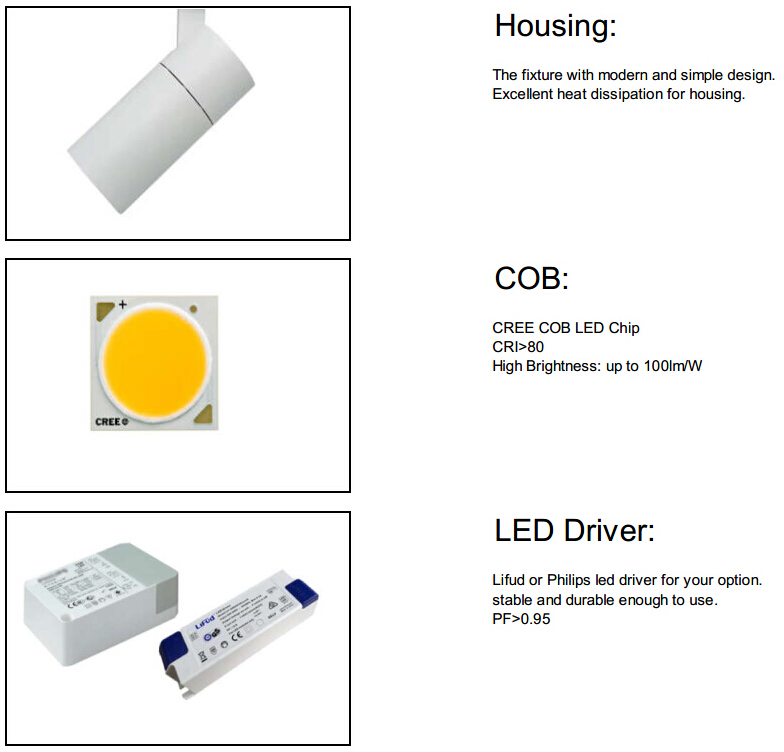 2) Adopted well-known brand CREE COB LED, CRI >80, up to 100lm/W, in order to ensure good light effect and long lifespan.