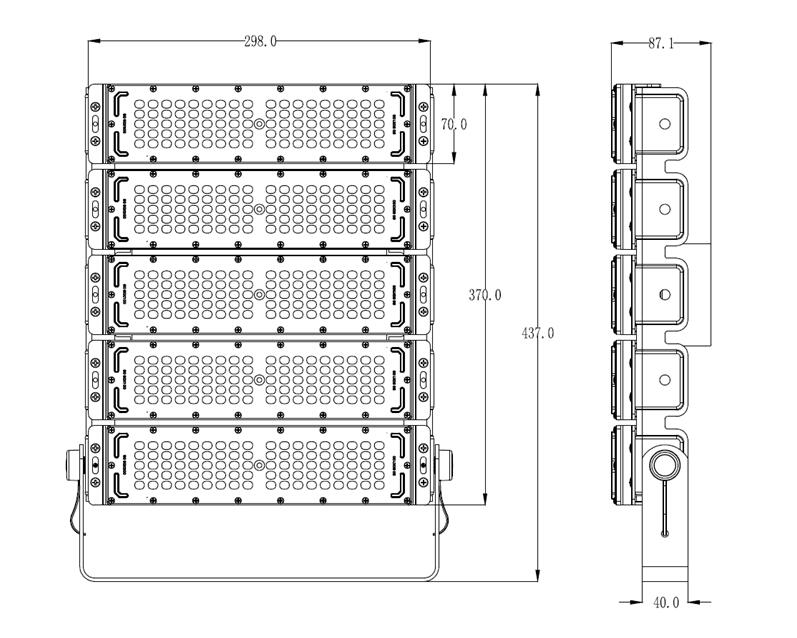 Modular led flood light provide a perfect solution for multiple applicatons for indoor and outdoor, which including tunnel lighting, area lighting, parking lot lighting, stadium lighting, landscape lighting, security lighting, billboard lighting, high mast lighting etc. The aluminum extrusion provides high effective heat dissipation for led modules, and to ensure low led junction temperature and long lifespan of leds, high lumens output. Taking high brightness of philips or osram SMD3030 and Meanwell or Sosen led driver to assure high quality. Top quality polyester poweder coating and IP65 grade will assure superior weatherability against water penetration, rust and fade against UV.This series of modular led flood lights can be anti-level 17 hurricane, impact grade is IK10. With warranty 5 years, it is really a fit and forget products for your project.