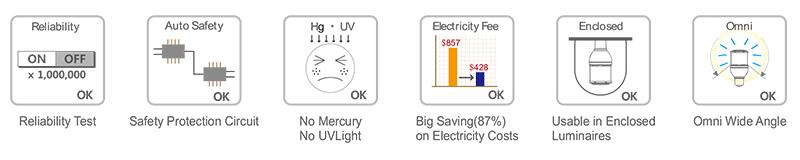 * Long operation life time, above 50,000hours. Low maintenance costs.