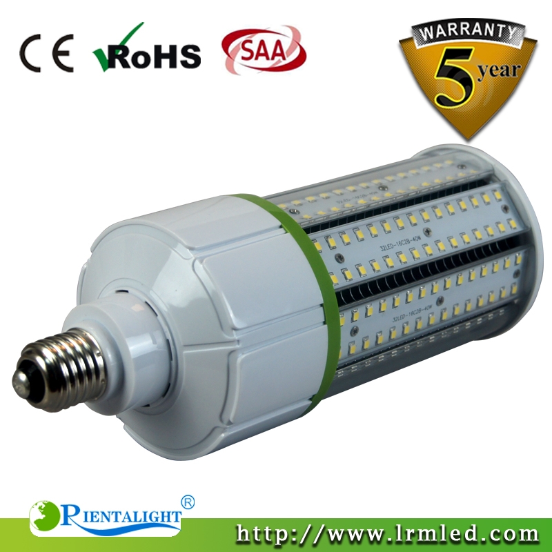 40W Mogul base led corn light is designed with multiple bases such as E26, E27, E39, E40 and B22, you can chose the base according your demand. Because of screwed type base, it can fit and replace many types of conventional lamp, such as high pressure sodium, metal halide light, compact fluorescent light, incandescent bulbs,in this way,led corn light can help you save much energy and save much money on your electric bill.