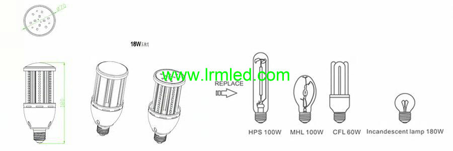 18w 360 degree SMD2835 LED Corn light is the perfect replacement lamp of HPS, HID, MHL, CFL and Incandescent bubs, and mainly used in garden, street, warehouse, shopping mall, wall light, parking Lot, courtyard, square, park, airport, subway, gymnasium, etc.. Can be used in the indoor or outdoor IP 65 or IP67 closed fixtures.
