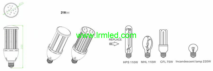 21w SMD2835 LED Corn Light E26 is the perfect replacement lamp of HPS, HID, MHL, CFL and Incandescent bubs, and mainly used in garden, street, warehouse, shopping mall, wall light, parking Lot, courtyard, square, park, airport, subway, gymnasium, etc.. Can be used in the indoor or outdoor IP 65 or IP67 closed fixtures.