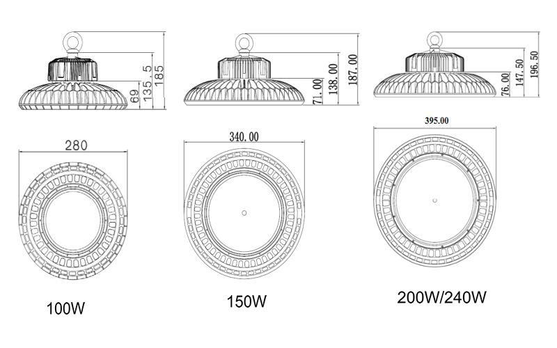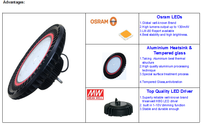 1) UFO shape led high bay with innovated design,much lighter and smaller.